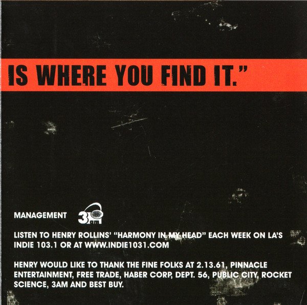 Geoff Barnett : Coordinator, Producer [Additional], Edited By [Additional], Keith Jones (43) : Cover, Design [Original Cover Design], Jen Murse : Design [Package Design], 3am (4) : Management, Rae DiLeo : Mixed By, Henry Rollins : Performer, Maura Lanahan : Photography By, Richard Bishop : Producer, Edited By, Ward McDonald : Recorded By, Henry Rollins : Written-By